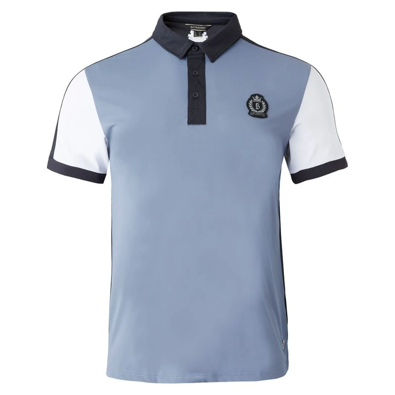 Our B Vertigo Alec polo shirt is made from breathable piqu fabric that feels soft and cooling on the skin. The contrasting colors look unique, but the classic combinations will easily fit into your riding wardrobe. Short sleeves and button closure prevent you from overheating. Wear this polo shirt riding, in the stables or in your free time for a cool look. Also available in women’s cut (#33591).