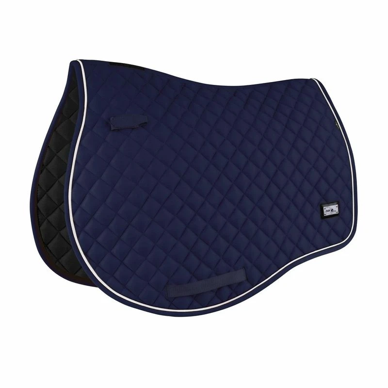 This classic, basic saddle pad has small diamond quilting on an easy care blend fabric with breathable, fast drying mesh lining. It comes in bold colors with simple contrast trim. The contour shape and billets make sure it stays in place and ensures your horses comfort.