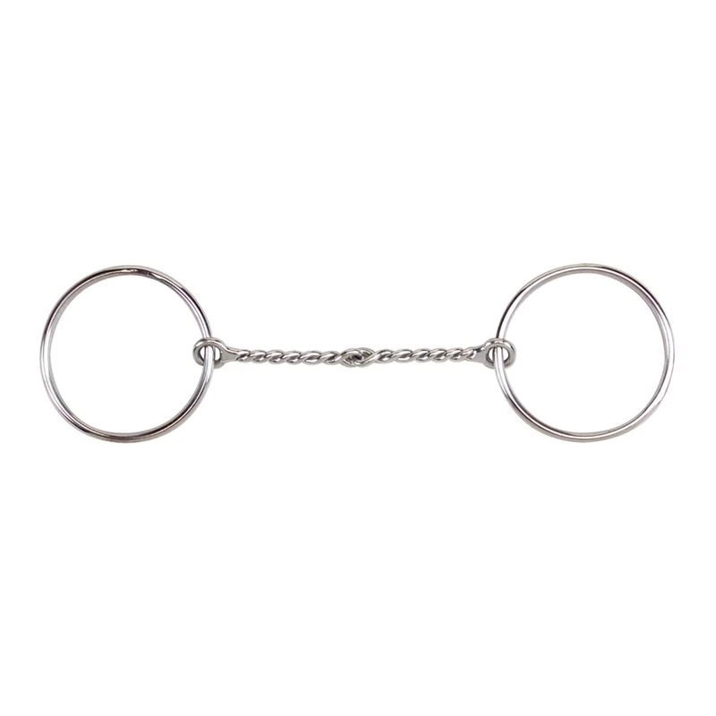 The Korsteel Stainless Steel Twisted Wire Loose Ring Snaffle Bit is a mobile bit which discourages fixing and leaning on the forehand.