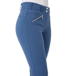 Horze Women’s High Waist Full Seat Breeches W/Crystals – Bering Sea Blue
